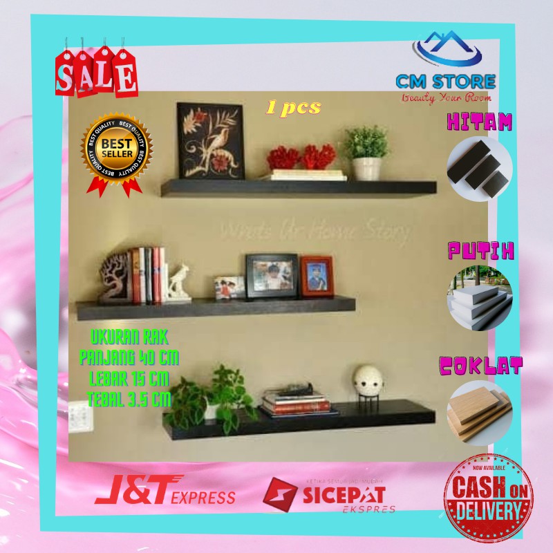 SELAMAT DATANG DI CAK MAN STORE,,,,,,!!!!! KAMI MENJUAL RAK DINDING MINIMALIS DENGAN HARGA TERMURAH , TERJANGKAU DAN BERSAING BAHAN YANG DIBUAT UNTUK RAK TERBUAT DARI KAYU BERBAHAN RINGAN (PLYWOOD GRADE A) DAN KUAT DAN KAMI JUGA MEMBUAT DENGAN BERBAGAI MACAM BENTUK DAN UKURAN YANG MANA BISA MEMBUAT DINDING RUANGAN ANDA LEBIH TERLIHAT MEWAH DAN ELEGAN. TUNGGU APALAGI JANGAN PERNAH RAGU DENGAN PRODUK KAMI , DIJAMIN TIDAK AKAN MENGECEWAKAN DENGAN BERBAGAI ULASAN BANYAK PEMBELI DI TOKO KAMI AND LET,S SHOPPING DI TOKO KAMI CAK MAN STORE GEBYAR PROMO DAN DISKON MANTAP!!!!!!!!!! SPESIFIKASI PRODUK KAMI : RAK DINDING MINIMALIS DENGAN UKURAN : * PANJANG : 40 CM * LEBAR : 15 CM * TEBAL : 3.5CM PILIHAN WARNA RAK DINDING : * HITAM * COKLAT SERAT KAYU * PUTIH KELENGKAPAN PAKET DI PRODUK KAMI * 1 PCS RAK DINDING MINIMALIS * 2 PCS BRAKET BESI ( MODEL PAKU ) DAN FISCHER PACKING PRODUK KAMI * KARDUS DAN KARTON FULL LAKBAN DAN ISOLASI UNTUK MENGHINDARI LECET DARI PRODUK ITU SENDIRI NB : PRODUK RAK KAMI DILAPISI DENGAN DECOSHEET ATAU SEJENIS PELAPIS FURNITURE SEHINGGA MENAMBAH KESAN ELEGAN DAN MINIMALIS DAN JUGA ( TIDAK MUDAH LE