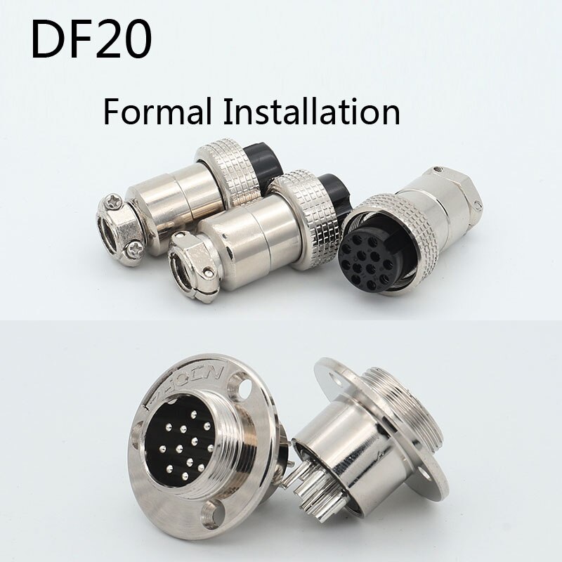Model: DF20Hole size: 20mmInsulation material: BakeliteShell material: zinc-based alloy (chrome plated)Connection method: weldingConnection method: threaded connectionOptional core number: 2/3/4/5/6/7/8/10/12Contact material: pure copper material (silver-plated; oxidation resistance; excellent conductivity)Note: Note: 1 set(Formal installation): female plug with male s