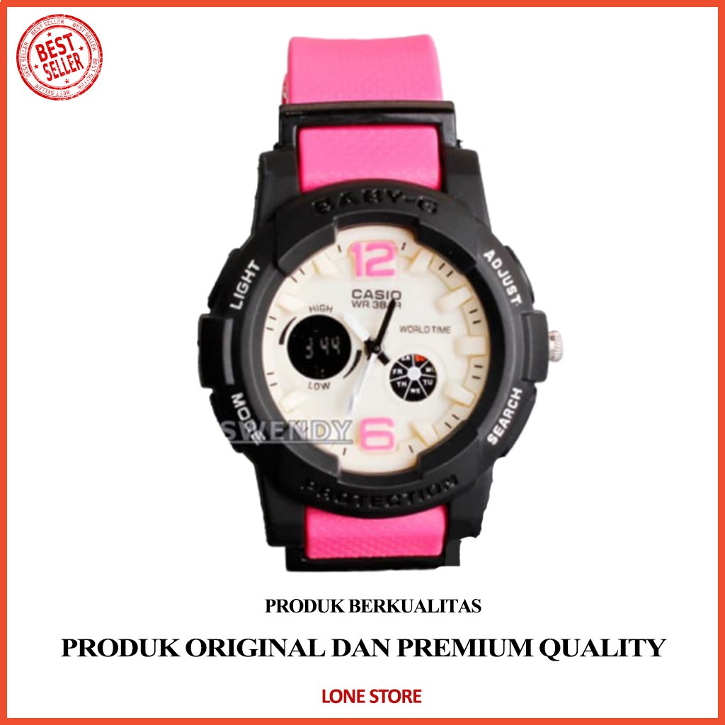 TERBARU !! Jam tangan digital Wanita & anak Baby-G Shock BGA-180 PinkTOLONG Membaca deskripsi ini sampai habis yah gan ,Karena ada Bonus yg kami bagikan :D !!!!!!!!!! MOHON BERHATI-HATI Kpd SELLER LAIN yg memakai foto kami , KARENA DI JAMIN KUALITAS BERBEDA !!!!!! :D******* G-Shock Casio PREMIUM!!! *******Kualitas : Grade Original /Kw Super /Grade A++/ Mirror 1:1( Kami MENJAMIN BUKAN ABAL-ABAL!! :D )SEMUA FUNGSI nya NYALA :- Jam- Menit- Detik- Tanggal- Hari- Light / Lampu- Stopwatch- Digital- Alarm- Analog *************************************************************- Untuk Foto barang 100% RealPic!!!! / Foto asli(GAK NYOMOT GAMBAR ORG/GOOGLE!!)- Foto di pakai di tangan? lihat foto berikut nya- Foto lampu menyala? lihat foto berikut nya- Setiap packing an akan di bungkus dengan buble wrap , sehingga aman sampai tujuan :D**************** BONUS********************SETIAP pembelian sudah TERMASUK :- Box G-Shock sesuai foto- BONUS BATRE SONY ORIGINAL- Free Bubble WrapKalo Agan masih ragu? Baca Feedback kami dengan menekan tombol "Profile toko - Produk Terjual "KAMI MASIH MENJAGA KONSISTENSI TOKO KAMI DENGAN 40.800++ PRODUK TERJUAL :DKami juga melayani Dropship / Reseller , Ecer & Grosir#jamtanganmurah #jamtangangshock #jamtangani