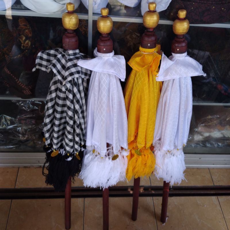 Payung bali mini kualitas bagus LENGKAP dg stik kayu.Bahan kain satin berkualitas.Bisa digunakan di gedong/kamar suci, plangkiran, pura, atau di pasangkan dengan patung bali.Bisa juga dipakai untuk hiasan dekorasi rumah, villa, hotel, restaurant dll.Barang satuan harga grosiran.Silakan tanyakan stok produk terlebih dahulu.Terima