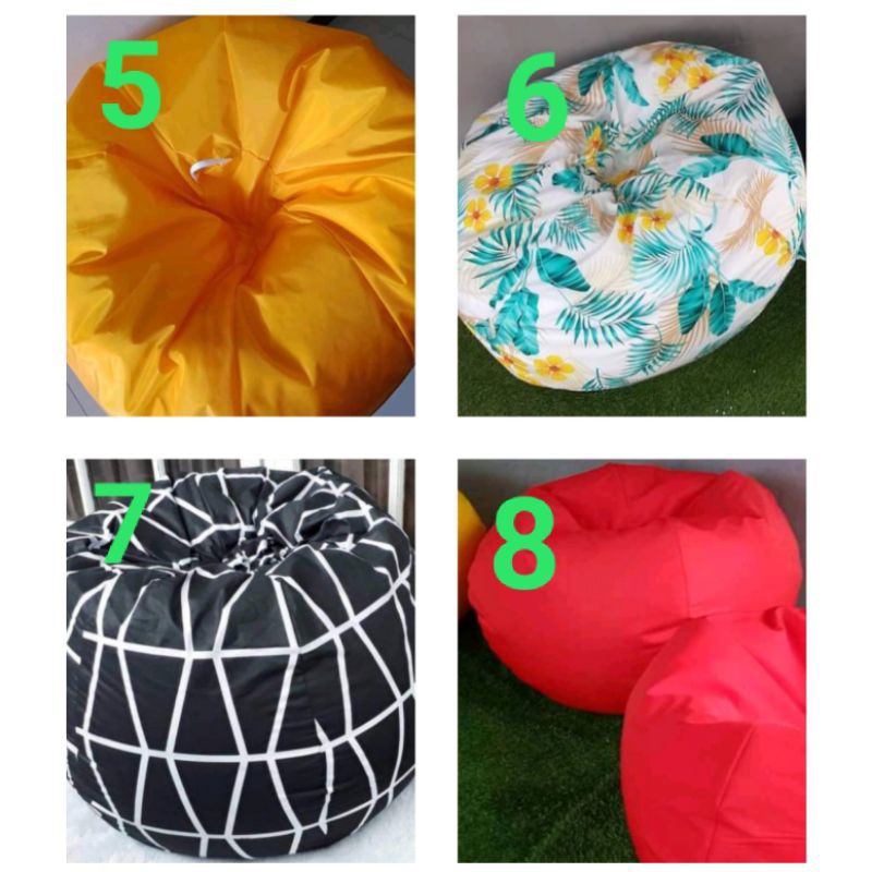 MOHON BACA DESKRIPSI !!!INFO : untuk gosend sameday maksimal mem bawa 2 size S dan 1 size M. Disarankan menggunakan instan untuk melebihi jumlah itu dan untuk 2 ukuran L menggunakan 2 kurir gosend ya ka bisa di infokan ke penjual terlebih dahulu.INFO : untuk kurir wahana, JNE dan J&T untuk pengiriman keluar kota bagi yang tidak terjangkau VIA gosend atau grabsend. kurir wahana hanya untuk mengirim invoice pemesanan. pembeli dikenakan biaya ongkir lagi untuk pengiriman bean bag dengan menggunakan dakota cargo. info lebih lanjut bisa silahkan tanya ke seller VIA chat Shopee.Tersedia Juga dengan ukuran : Size S 90x70Size M 120x90Size L 150x100Size XL 190x110 Stok selalu tersedia. karena bean bag kami produksi sendiri.Bean bag yang dijual sudah termasuk isi styrofoam.Cover dapat dilepas untuk dicuci dan diisi ulang.Bahan kain Suede (bahanya lembut,adem semi bludru cocok buat indoor tersedia warna polos)Kain taslan (bahanya kaya parasut,waterfrop cocok buat pemakaian outdor seperti di pantai,kolam renang,cafe² hanya tersedia warna polos)untuk pemesanan bean bag Indoor & Outdoor bisa tulis di catatan pembeli ataupun chat ke sellerHarga Sudah termasuk isinya tinggal langsung pakai.Berat ukuran S sekitar 1kg pengiriman lewat ekspedisi terkena volume. untuk pemesanan same day maksimal 2 pcs ukuran S. ukuran M & L disarankan menggunakan gosend instan.untuk pengiriman luar kota, provinsi seindonesia melalui dakota cargobisa konfirmasikan terlebih dahulu untuk pengiriman keluar kota. Jasa pengiriman yang ada di Shopee hanya mengirim Nota pemesanan dan barang dikirim menggunakan dakota c