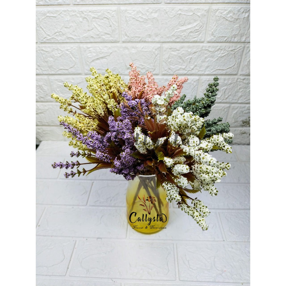 Kami menyediakan berbagai macam bunga untuk aksesoris souvenir, hiasan rumah/kantor, dekorasi cafe, gedung, pernikahan, pelaminan, rumah, untuk seserahan dan lain lainnya.. Dengan harga yang terjangkau dan kualitas yang bagus, kalian dapat membuat acara kalian semakin ramai dan berkesan :)Bahan : Bunga palsu terbuat dari plastik dan kawat dapat dibentuk sesuai keinginan- Ukuran : 30 Cm- Harga Untuk :1 tangkai bunga- Isi pertangkai : 5 pcs bunga - Kegunaan : Dekorasi pernikahan, rumah, cafe, restoran, buket bunga, dll- Awet : Tahunan sampai selamanya dengan perawatan yang benar- Info : Impor, ready stock, foto asli, * Untuk kesediaan barang dan warna mohon tanyakan terlebih dahulu untuk menghindari pereturan/pengembalian* Jika ada Barang/Warna kosong kita konfirmasi terlebih dahulu untuk langkah selanjutnya* Foto termasuk foto asli kami sendiri* Foto dan deskripsi hanya untuk referensi; ukuran, bentuk dan warna setiap tangkai tidak dijamin 100% sama. Tergantung alam/produksi* Untuk Komplain Harus Disertai Video Unboxing, jika tidak ada kita tidak terima komplain dengan alasan apapun* Rusak karna pengiriman bukan tanggung jawab kami*** Membeli = menyetujui aturan tokoHappy Shopping Silahkan di order kakak :)#artificialflower #artificialflowersby #artificialflowersupplier #supplierartificialflower #bungapalsu #jualbungapalsumurah #bungaplastik #bungaplastikgrosir #bungapalsugrosir #artifisialflower #daunpalsu #daunpalsumurah #rantingpalsu #bungakaret #bungapalsuimportsurabaya #bungapalsudekorasi #dekorpelaminan #supplierbungapalsu #bungaplastikgrosir #bungabuatan #daunbuatan #rantingbuatansalju #grosirbungaplastik#grosirbungamurah #grosirbungaartficial #grosirbungapalsu #grosirbungasurabaya #bungahias #bungadekorasi #bungaartificial #bungaartificialmurah #bungaplastik #bungapalsu #bungadeasy #artificialflowermurah #jualbungapalsumurah #jualartficialflower #pajangan #bungapajanga #bungameja #tanamanplastik #artificialplants #artificialleave #artificialleaf #daunberinginpl