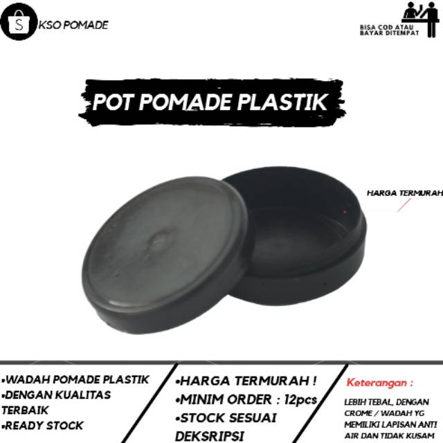 Min Order : 12pcsChat Terlebih dahulu Untuk menanyakan kesediaan Stock Type : Wadah PomadeBerat : 15gr / per-1pcsHanya tersedia 1 variant Warna WadahWarna : Hitam1Kg muat sampai : 80pcs Pot Pomade.Selalu ada Promo di setiap Pembelian :) Promo : Packing Bubblewrap Aman untuk segala Pengiriman .Gratis Sisir + Sticker setiap Pembelian sesuai jumlah yg di Order .#ksopomade#pomadelokal#grosirpomade#pomadepria#pomadek