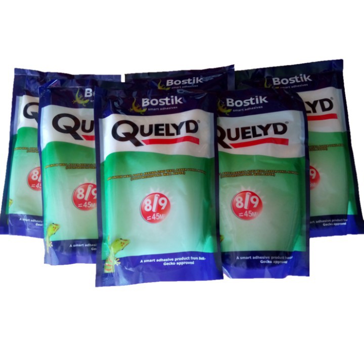 Deskripsi ProdukReady Makassar Dan Untuk Pemasangan Bisa Langsung Melalui ChatQuelyd SE Bostik / Perekat ekspres untuk pemasangan wallpaper vinyl tipe ringan sampai berat mengandung bahan anti bakteri untuk mencegan timbulnya jamur. Produk ini dari Eropa yang terjamin kuwalitasnya.Cara Pemakaian dicampur air bersih 6-8 L / pak (tergantung tipe wallpaper) dan diaduk sekitar 2-5 menit sampai berbentuk pasta.Keunggulan :1. Sisa adukan pada permukaan wallpaper dapat dibersihkan tanpa merusak motif.2. Merekat kuat tidak perlu menambah lem putih pada adukan.3. Sisa adukan dapat digunakan kembali setelah disimpan 3-4 hariData teknik:Kering Awal 90-120 menit Kering Total 24-72 jam untuk 7-8 rol / pak, 1 rol = 5 m persegiWarna : Bubuk berwarna putihKemasan : 250 gram dan 250 gram packing NB : untuk pemasangan, dianjurkan substrat bersih dari