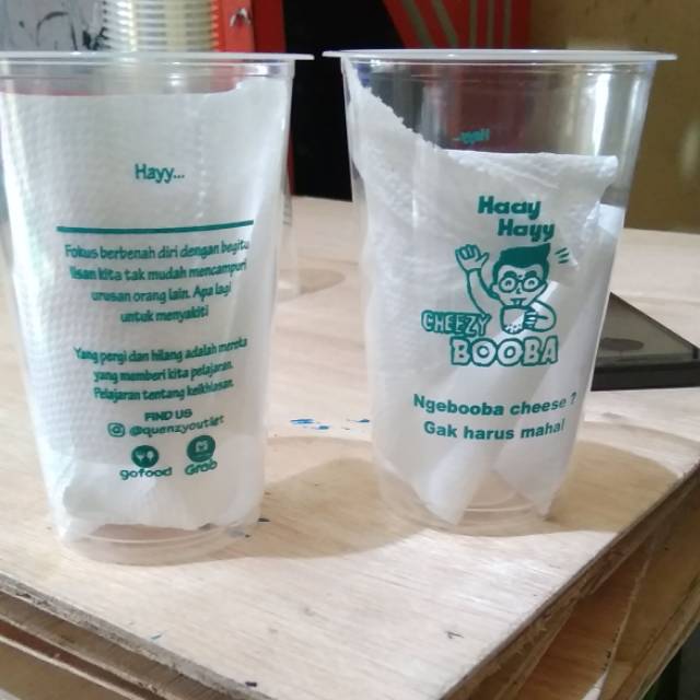 Sablon gelas cup plastik 7 gram merk sap Dimensi : tinggi 12,5cm, diameter 9,3cm Isi volume : 500mlHarga sudah termasuk cup + sablon 1 warnaMinimal order 1000 pcsDesain bisa kirim lewat chat terima
